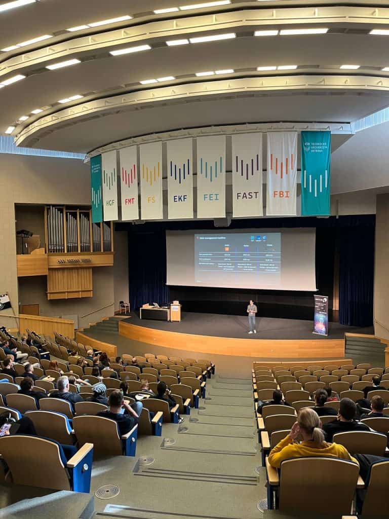 Toho rána jsme s kolegy vyrazili na vysokou školu Báňskou, kde se konala 3. konference TechMeetup 2022. Sešla se zde hromada front-endistů, PHPkářů, Rubistů, javistů, Netistů, QA, infra, UX designerů, prostě všech, co mají co dočinění s IT. U vstupu nás přivítali a po registraci jsme se vydali směrem k sálu. Organizátoři mysleli na vše a bylo zde přichystáno i malé občerstvení. Mne mile překvapil čerstvě uvařený sypaný čaj, který jsem si vzal s sebou na přednášku.